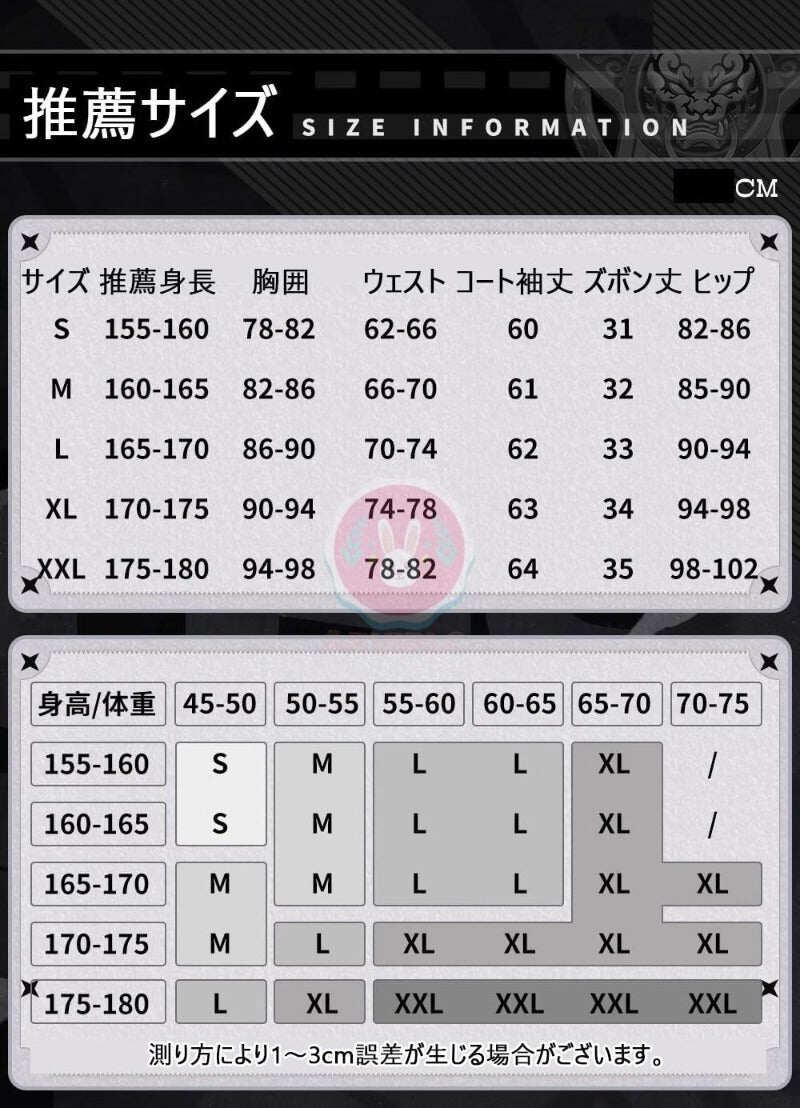 ご注文前にサイズ表を必ずご確認いただき、使用予定日時も十分にご検討の上、お申し込みください。