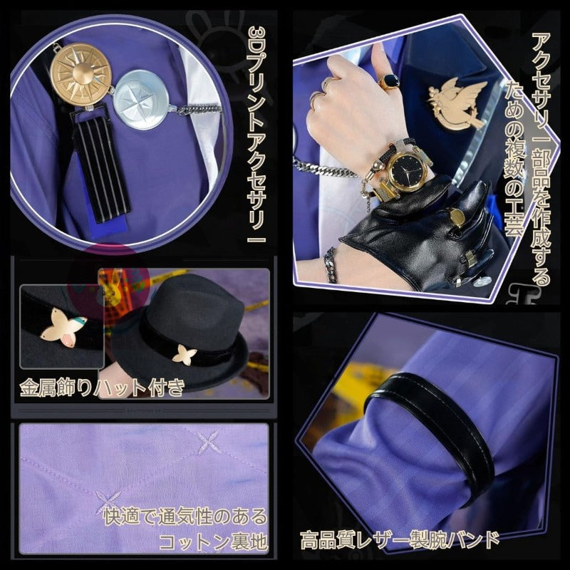 Azuiblc Zenzero Hugo Cosplay Costume with Metal Accessories and Hat, Vampire Suit, Gentleman Style