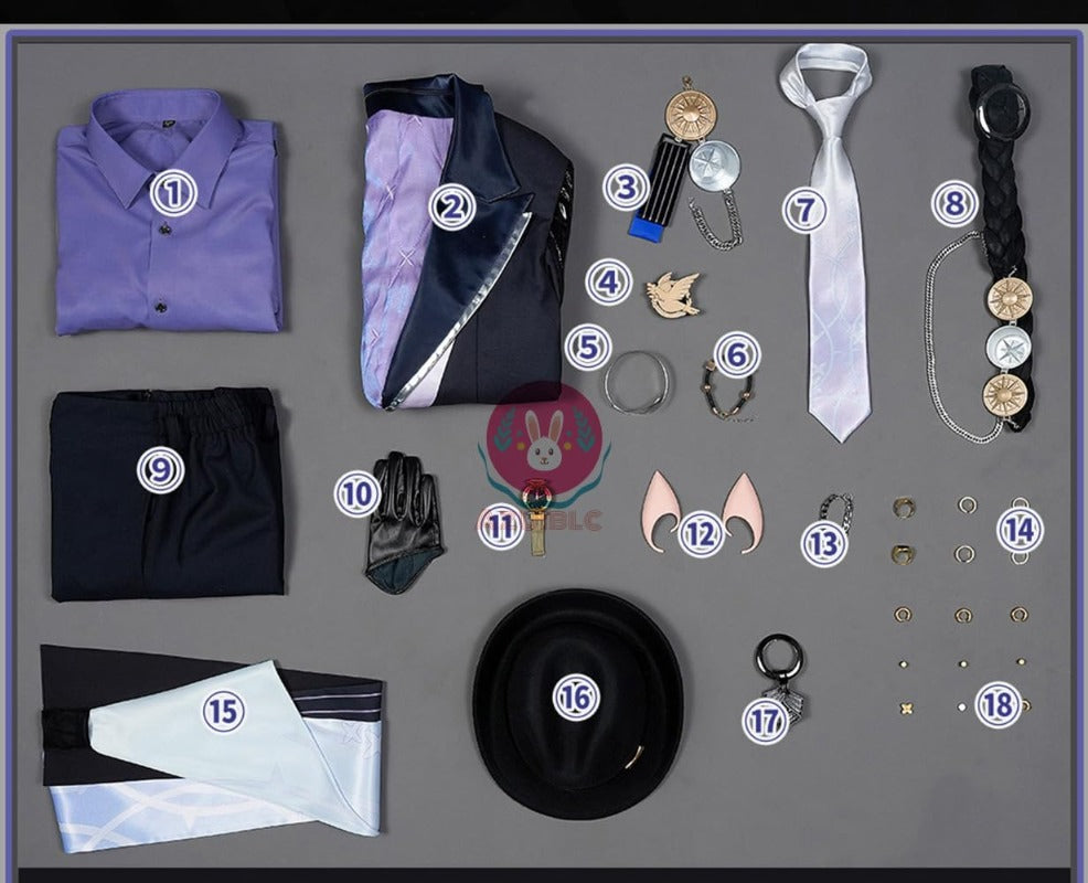 - [Set contents] Wig + shirt + coat + chest accessory + brooch + armband + bracelet + tie + belt + pants + gloves + watch + elf ears + chain + ring + cape + hat + hair accessory + earrings