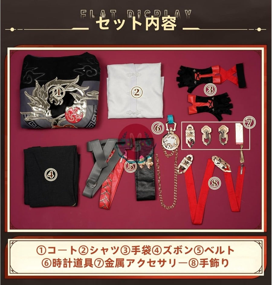 - 【セット内容】①コート②シャツ③手袋④ズボン⑤ベルト⑥時計道具⑦金属アクセサリー⑧手飾り