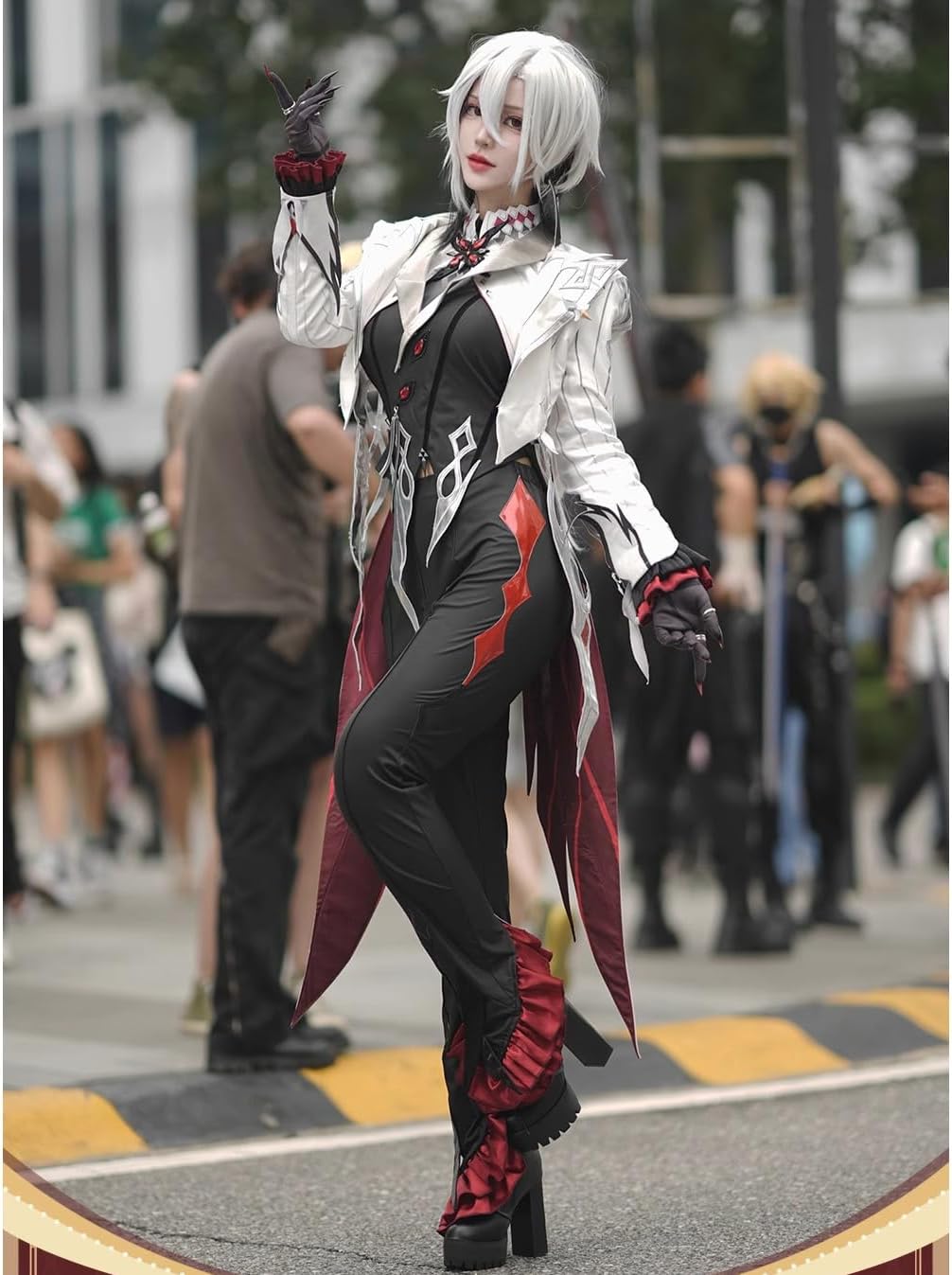 - 【세트 내용】헤어 장식+쇼트 상의+롱 베스트+칼라+코트+바지+장갑+반지*7+피어스+네일(흑+빨강 2 세트)(가발, 구두별매)