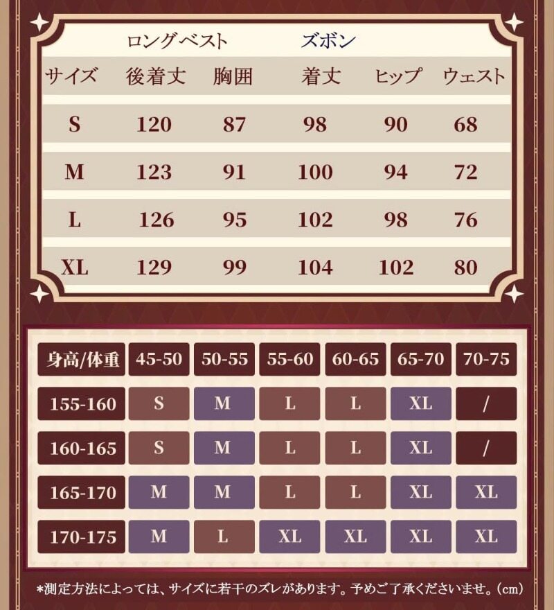 ご注文前にサイズ表を必ずご確認いただき、使用予定日時も十分にご検討の上、お申し込みください。